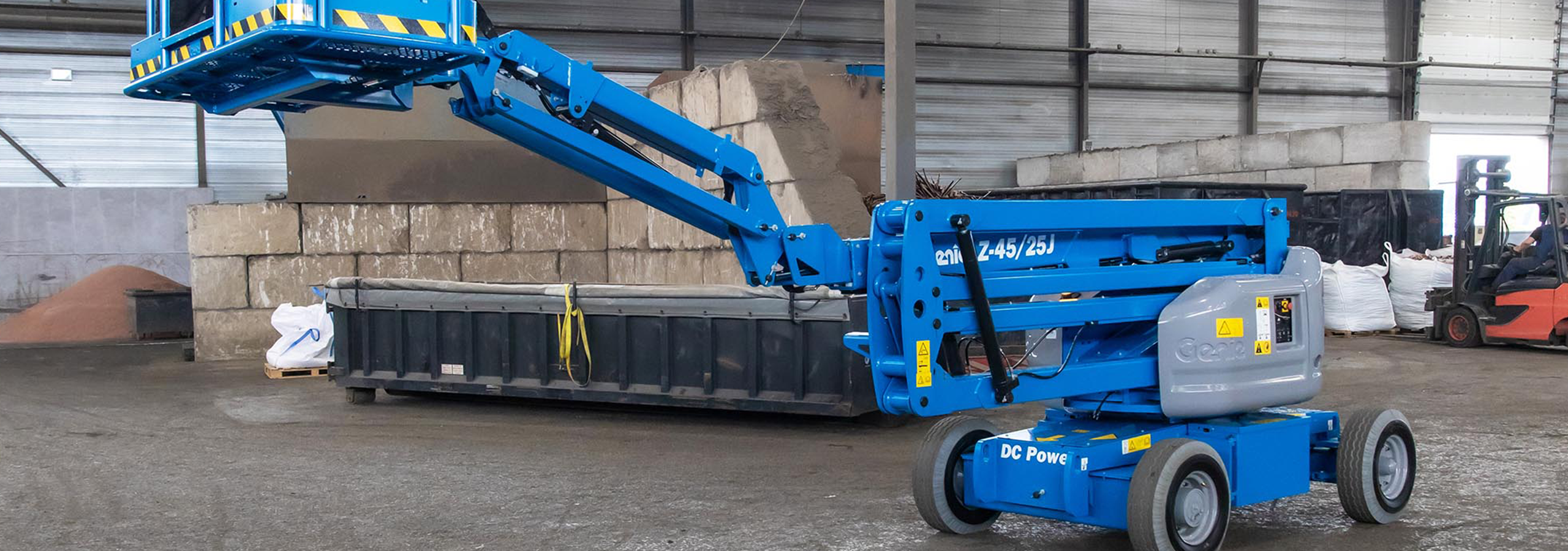 Perfecta para la construcción en el exterior y para aplicaciones industriales, la plataforma articulada Genie® Z®-45/25J RT ofrece una elevación versátil, combinando capacidades de posicionamiento hacia arriba, hacia fuera y por encima, así como un alcance inigualable. El reducido radio de giro y el voladizo posterior cero de este modelo facilitan la maniobrabilidad en áreas de trabajo reducidas.